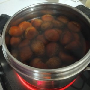 1. First, boil the chestnuts for about 5 minutes to soften the outer skin.