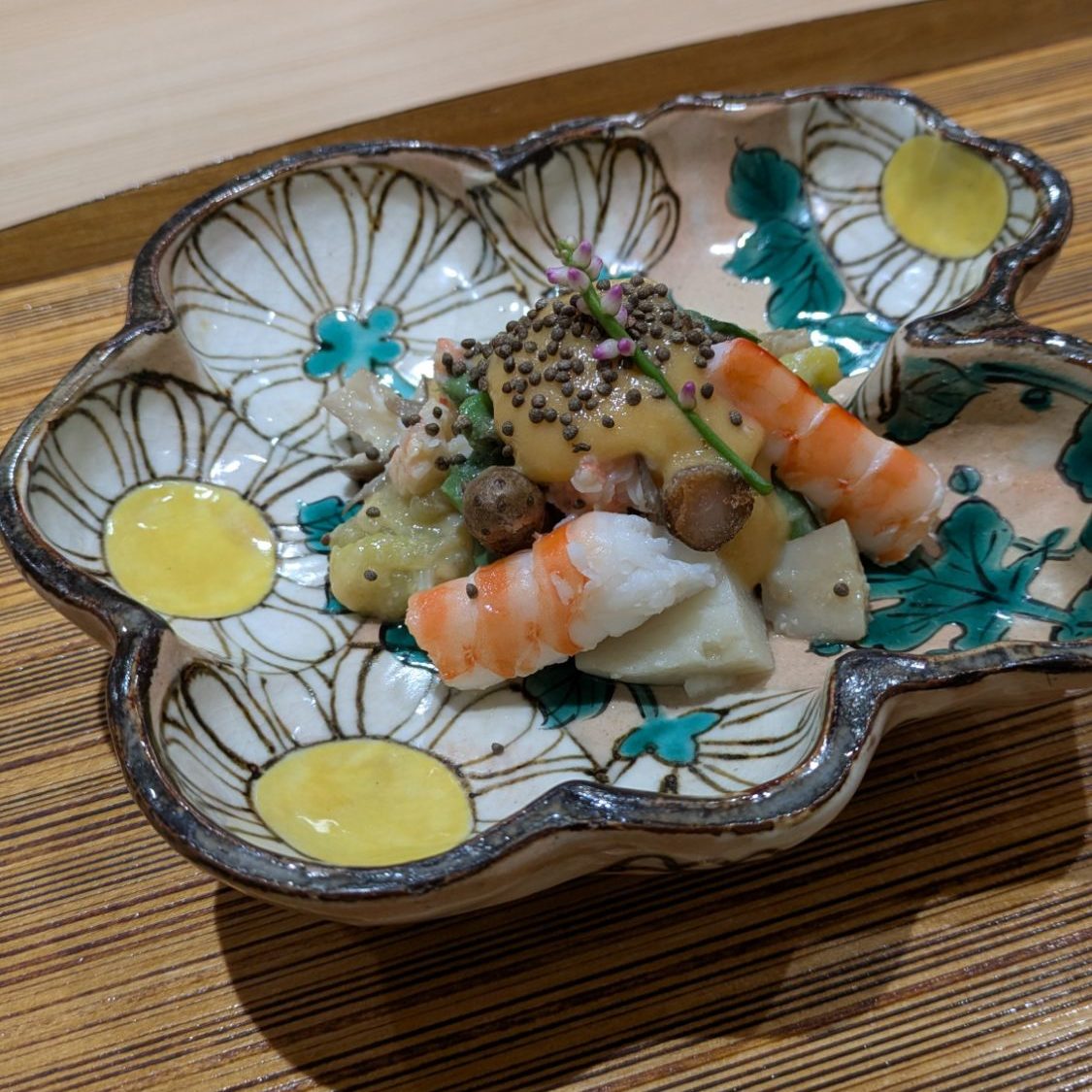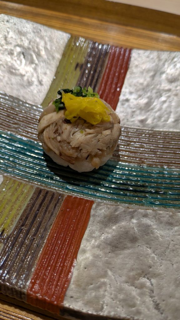 Next came a small ball-shaped sushi made with fish. The plate itself was beautiful as well.