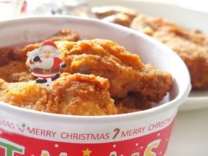 日本ではクリスマスにケンタッキーフライドチキンを食べるのが流行っています。11月くらいにクリスマスセットの予約受付が始まります。ある年、丸鶏が手に入らなくて、クリスマス直前にケンタッキーに予約電話をしたら、なんと売り切れでした。人気なんですねぇ。
