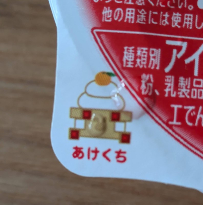 このアイスは、蓋を開けて直接吸って食べるアイスです。アイスが溶けて手が汚れることもないので、とても便利です。