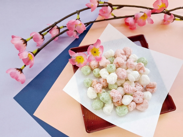 Hina-arare: These are colorful, small sweet rice crackers. Their beautiful colors make them perfect for displaying alongside the dolls until the day of the festival.