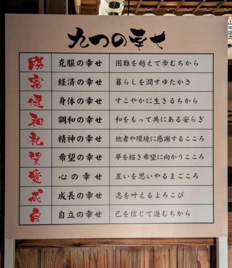 境内にこんな看板がありました。あなたが願う幸せは何ですか。