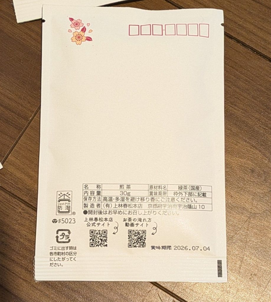 QRコードにお茶の淹れ方のリンクが貼ってあったので、共有しますね。