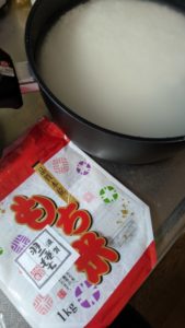 To make mochi, we use glutinous rice which has a strong stickiness. While glutinous rice can be found at supermarkets, I bought mine at a rice shop. Japan has specialty rice stores that offer various types of rice. This time, I chose glutinous rice from Shiga Prefecture.