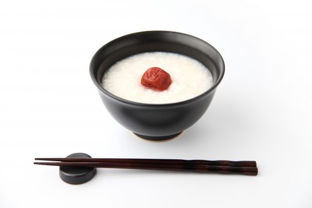 梅干しとは、梅の実を塩で漬けて作る日本の保存食です。とても酸っぱいのですが、おかゆと相性が良く、昔から風邪に良いと言われてきました。