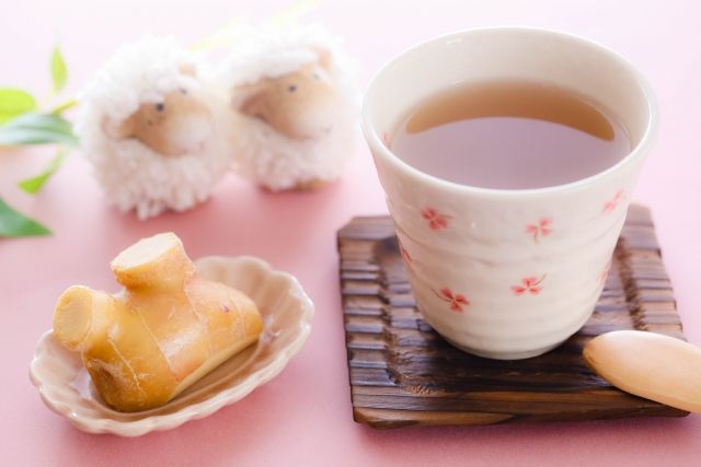 Ginger tea, made by dissolving grated ginger and honey in hot water, is often drunk at the early stage of a cold.